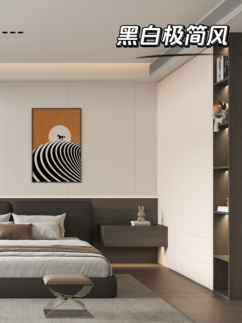 除了黑白风,该组衣柜还能适配现代、轻奢等多种风格。